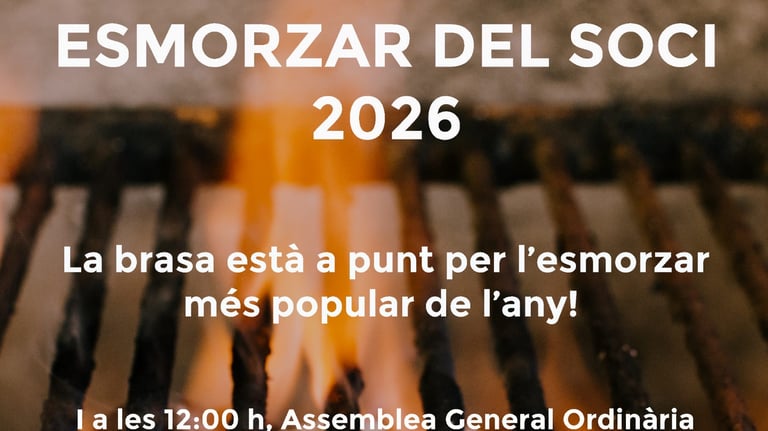 El dia 25 de gener, a partir de les 9:00h del matí, tots els socis i sòcies de l'Ateneu esteu convocats a celebrar la nostra Festa amb un esmorzar popular de brasa a càrrec de l'Ateneu. En acabar, a les 12:00h, es celebrarà l'Assemblea General Ordinària de l'Ateneu.