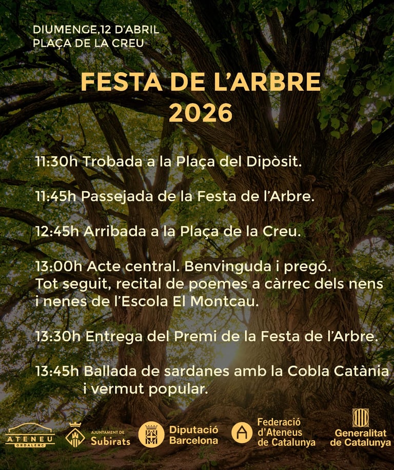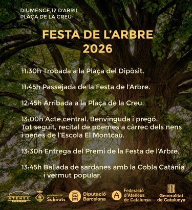 Des de la Junta de l'Ateneu us animem a participar a la Comissió de la Festa de l’Arbre activament, tant en les actuacions prèvies com en la jornada festiva. Podeu accedir a tota la informació sobre la Comissió de la Festa de l'Arbre a través del següent enllaç: Comissió Festa de l'Arbre