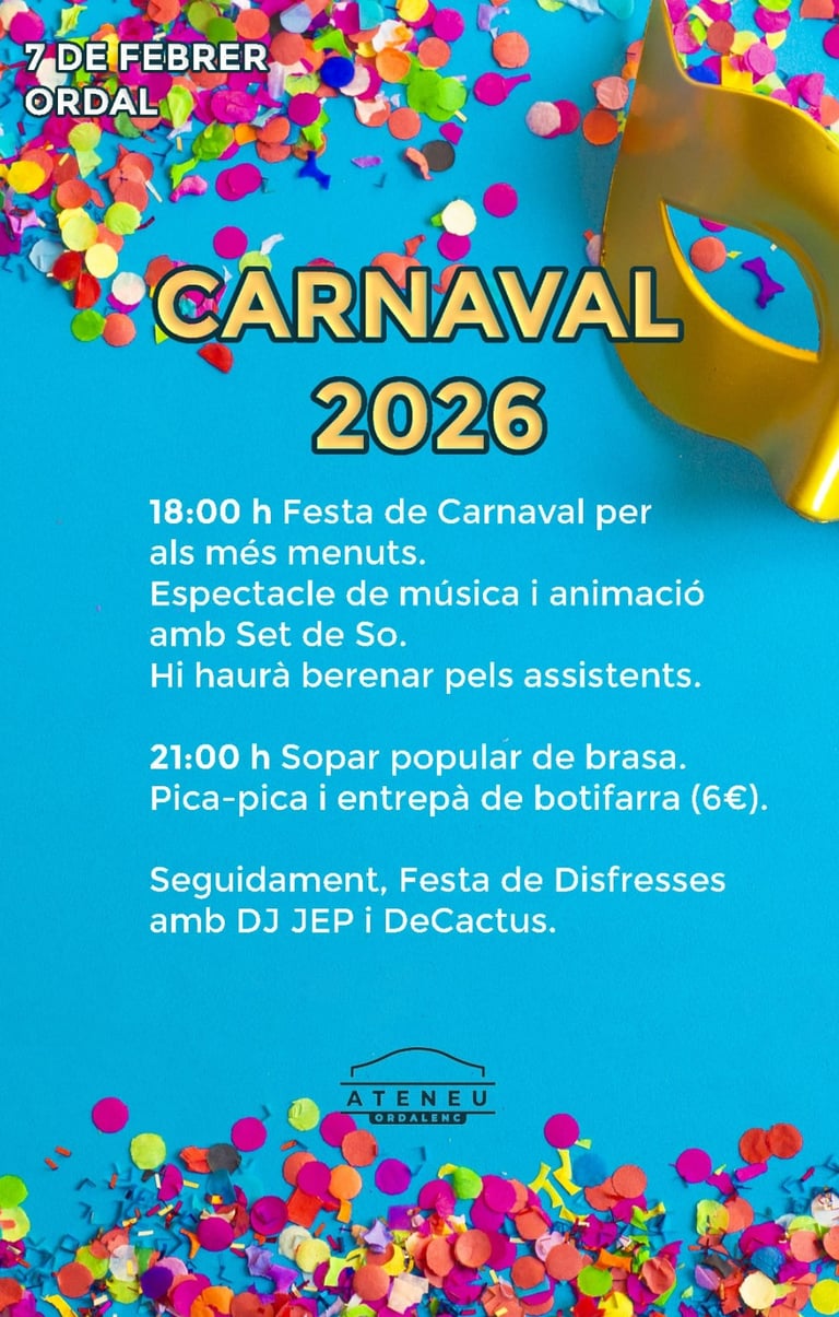 Carnaval d'Ordal 2026 i sopar popular de brasa
